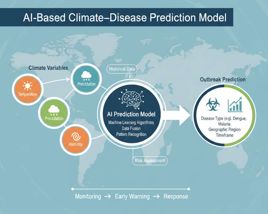 AI models integrate climate data to predict outbreaks of climate-sensitive diseases such as: